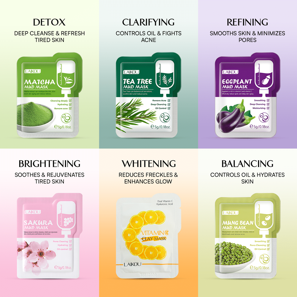 Unleash your skin’s full potential with the Laikou ‘Daily Dose’ 18-Pack Mud Mask Variety Set, a comprehensive collection from the trusted Laikou brand. This set is your all-in-one solution for diverse skincare needs, featuring 18 individual packs—three packs each of six unique, targeted mask formulations. Whether your goal is deep purification, soothing acne, balancing oil, or achieving a luminous glow, this variety set ensures you have the perfect mask for every skin moment.