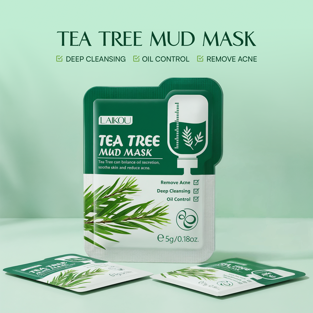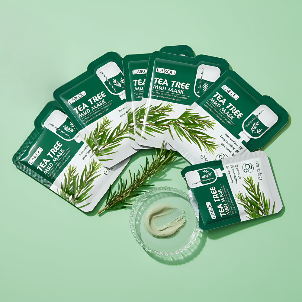 Tea Tree Mud Mask | Acne Removal, Deep Cleansing, Oil Control | **Italian Tea Tree (Melaleuca Alternifolia Leaf Oil)** | Balances oil secretion, soothes irritation, and is highly effective at **reducing and preventing acne** while replenishing moisture. |
