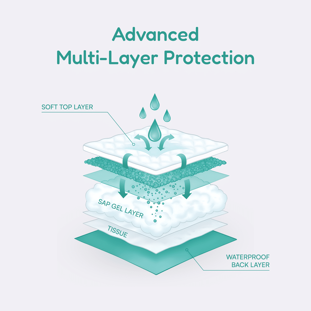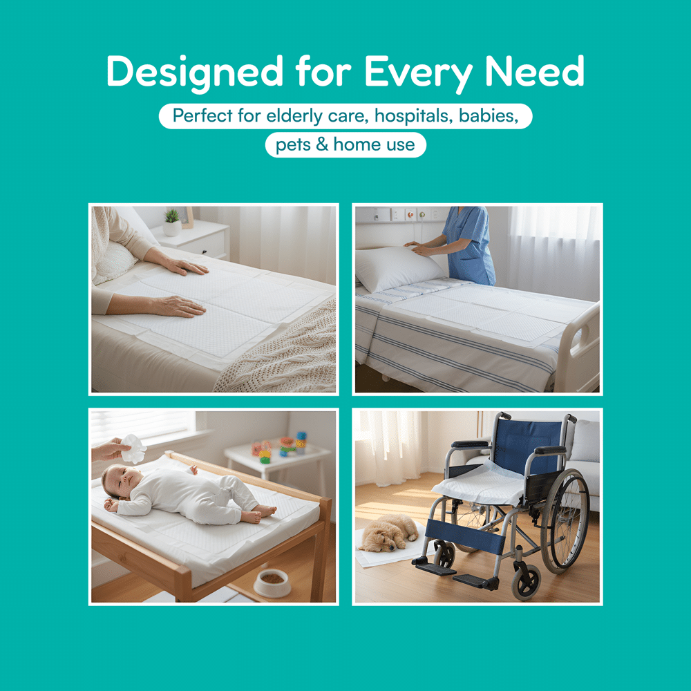 These pads feature a superior multi-layered construction engineered for maximum performance. This innovative design includes an ultra-absorbent core that quickly locks in liquids and neutralizes odors, complemented by a waterproof backing that completely stops messy leaks and stains from reaching the mattress or upholstery. The top layer is crafted from a premium non-woven fabric that is smooth, gentle, and safe for even the most sensitive skin, including a baby’s. You can trust these pads to provide instant dryness and comfort, reducing the risk of skin irritation and promoting a restful sleep. Whether you need reliable bed protection for adults, a convenient changing mat for babies, or even a training pad for pets, this versatile, heavy-duty underpad set delivers comprehensive protection for your entire family with peace of mind and love.